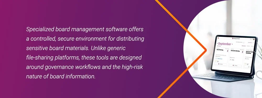Specialized board management software offers a controlled, secure environment for distributing sensitive board materials. Unlike generic file‑sharing platforms, these tools are designed around governance workflows and the high‑risk nature of board information.